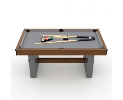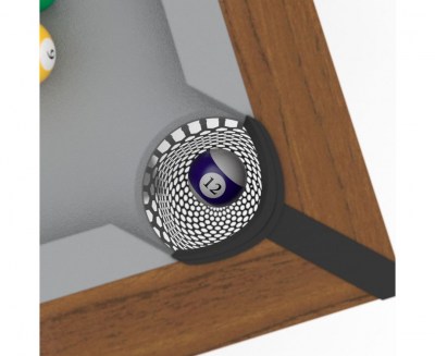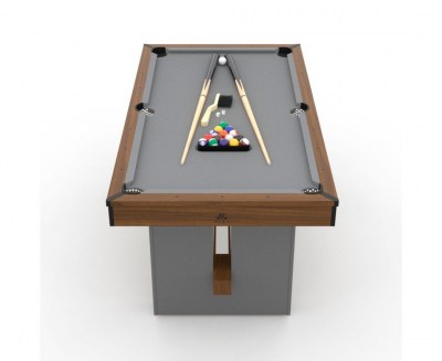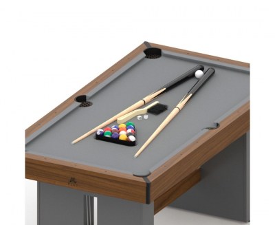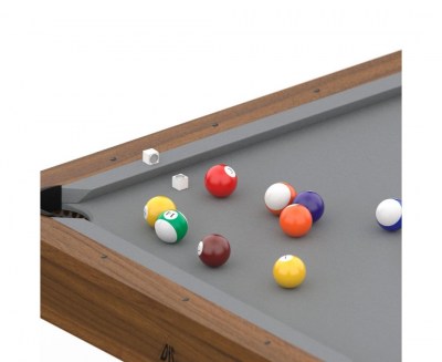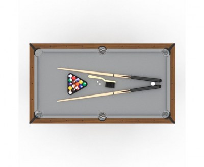 Покрытие игрового поля оттеняет цвет корпуса: серая ткань из шерсти и нейлона. Ценители игры по достоинству оценят качество модели и комфорт от игрового процесса. Ширина луз - 7,5 см. Размеры игрового поля: 146,4 x 71,3 см, а борты толщиной 9,5 см и высотой 2 см.