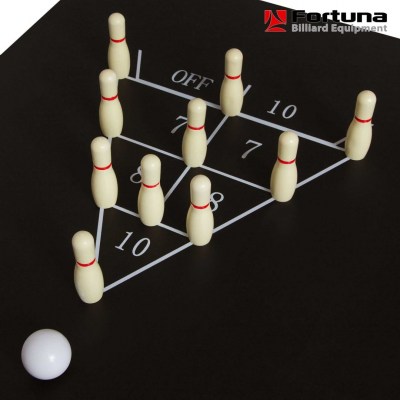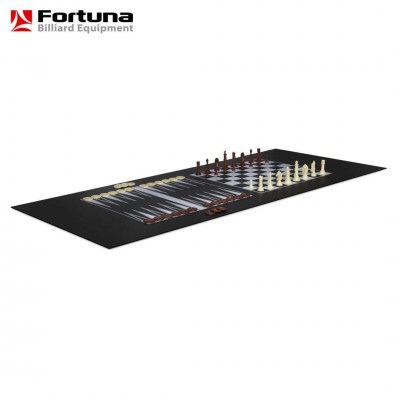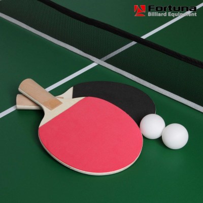 Бильярдный стол Fortuna Снукер 6 футов 9 в 1 - это многофункциональный игровой стол, включающий 9 игр: снукер, шашки, шахматы, нарды, настольный теннис (пинг-понг), кегли, шаффлборд, игральные карты и домино. Основой служит бильярдный стол размером 6 футов для игры в снукер с плитой из ЛДСП толщиной 15 мм, покрытой сукном традиционного для бильярда цвета English Green (английский зеленый). Для игры в настольный теннис поверх стола накладывается игровое поле для тенниса (толщина плиты 9 мм) и устанавливается сетка. Для использования стола в качестве основы для других видов игр используется другая дополнительная плита толщиной 3 мм черного цвета, на которой размещается игровое поле с разметкой для соответствующей настольной игры (шашки, нарды, шахматы, шаффлборд или кегли) либо эта плита используется как самостоятельная игровая поверхность (игральные карты, домино).